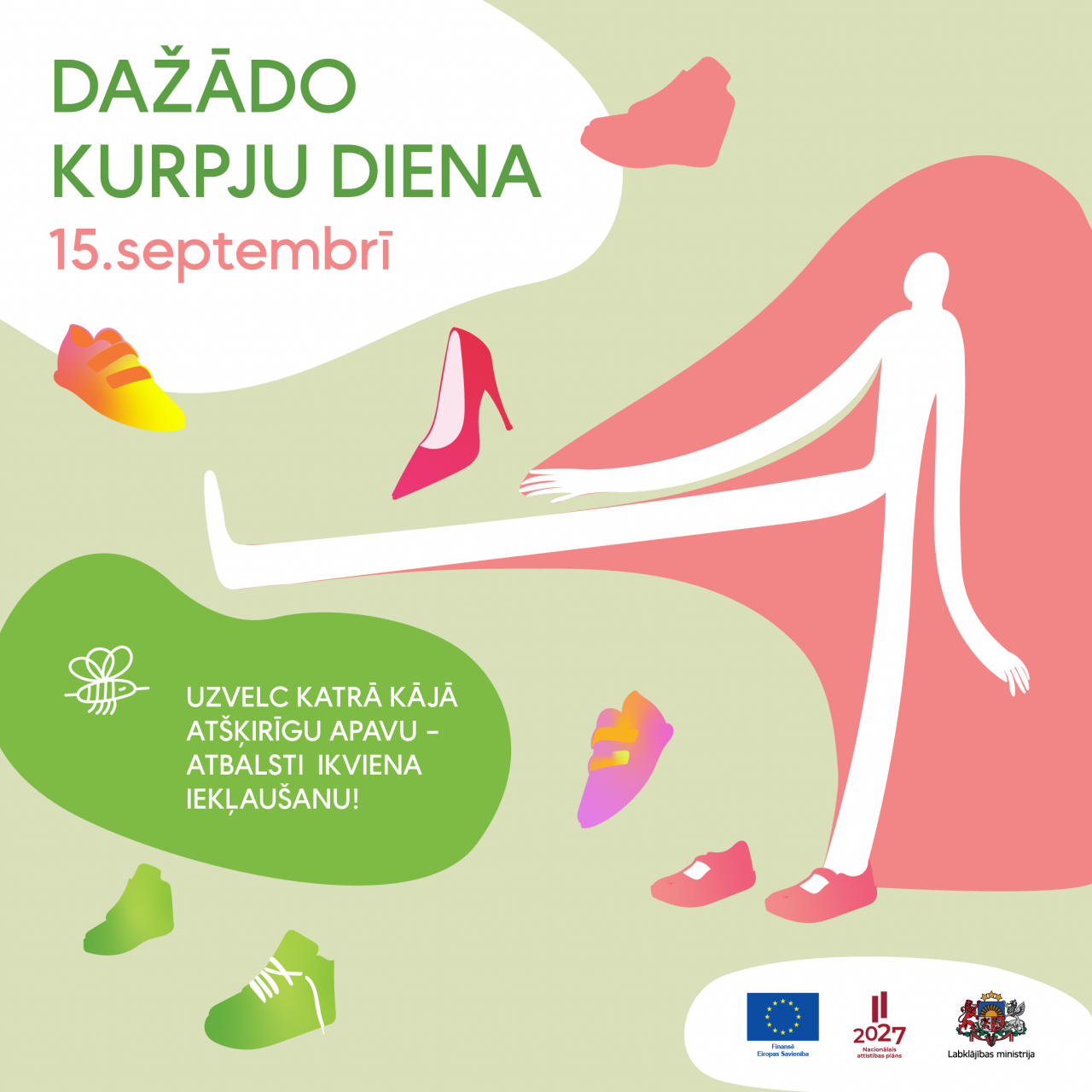 To truly understand another person, you have to walk in their shoes, says an old saying. Only by understanding and accepting the different can we build a more inclusive society. Therefore, on September 15, every resident of Latvia is invited to wear a different shoe on each foot, symbolically expressing their support for the target groups of deinstitutionalization – children with functional disorders and their families, people with mental disorders and children left without parental care. Special events will be held in Riga, Jelgava, Valmiera, Ventspils and Ludza, but the "Different Shoes Day" will also be brought to life in social networks and elsewhere in Latvia.