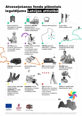 The Recovery and Resilience Facility is a centrally managed budget programme of the European Commission, set up in addition to the Multiannual Budget of the European Union for the programming period 2021-2027. It aims to support reforms and investments related to the transition to a green and digital economy and to mitigate the social and economic impact of the crisis. With The Recovery and Resilience Facility €1.97 billion will be invested in Latvia's economy by the end of 2026, through reforms and investments in all six of the Recovery and Resilience Facility's pillars: Climate and Energy (including REPowerEU), Digital Transformation, Reducing Inequalities, Economic Transformation, Health and Rule of Law.