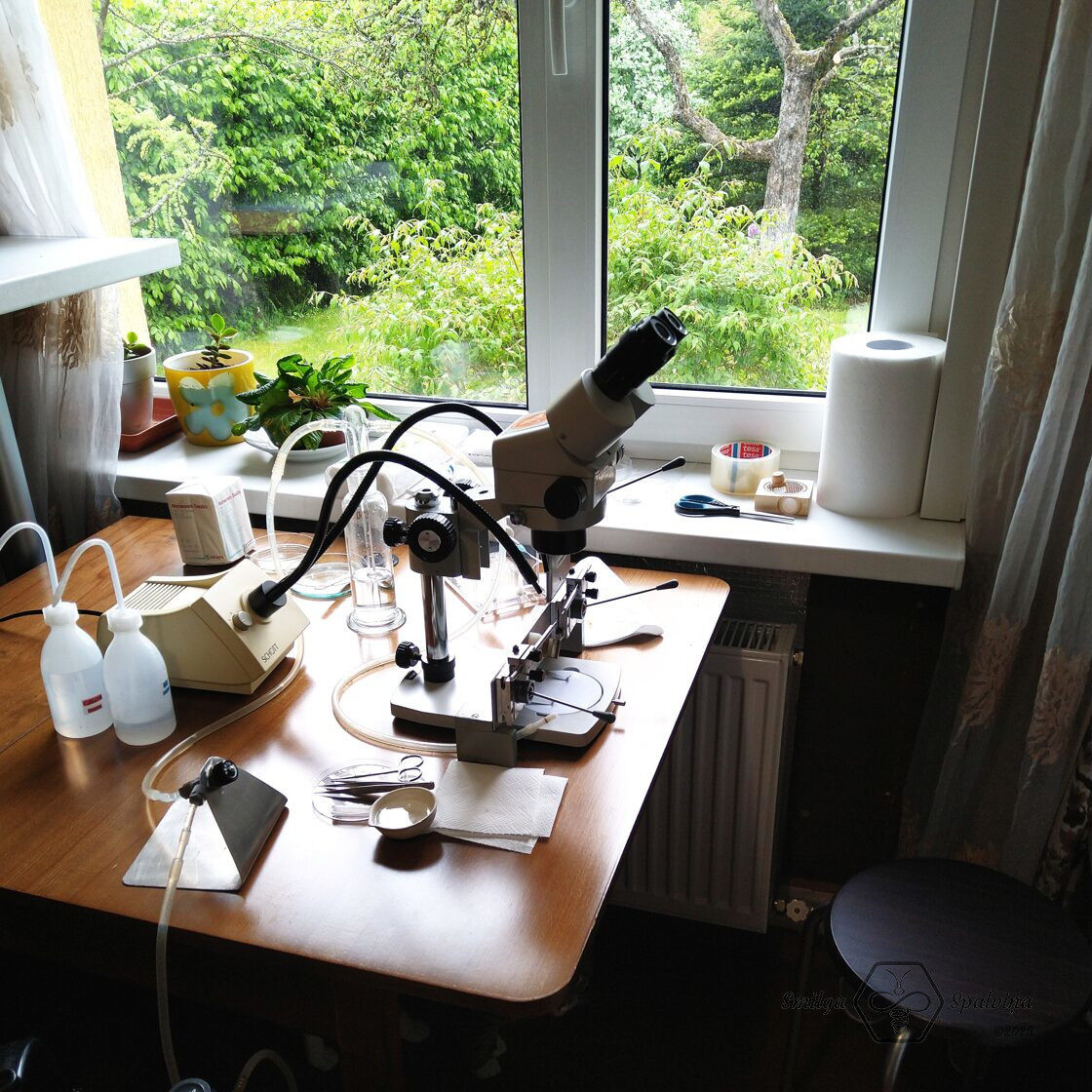 Of the approximately 15 beekeepers engaged in queen bee breeding in Latvia, only two offer instrumental insemination. Preserving good breeding material is essential for ensuring high productivity, disease resistance and winter hardiness in apiaries. As queen bee breeding and creating splits are the company's main activities, cryopreservation services are also offered to foreign breeders. This allows them to renew the best lines even when the breeding queens have reached the end of their working life. Queen bees bred by Agnese have already travelled to 12 other European countries.