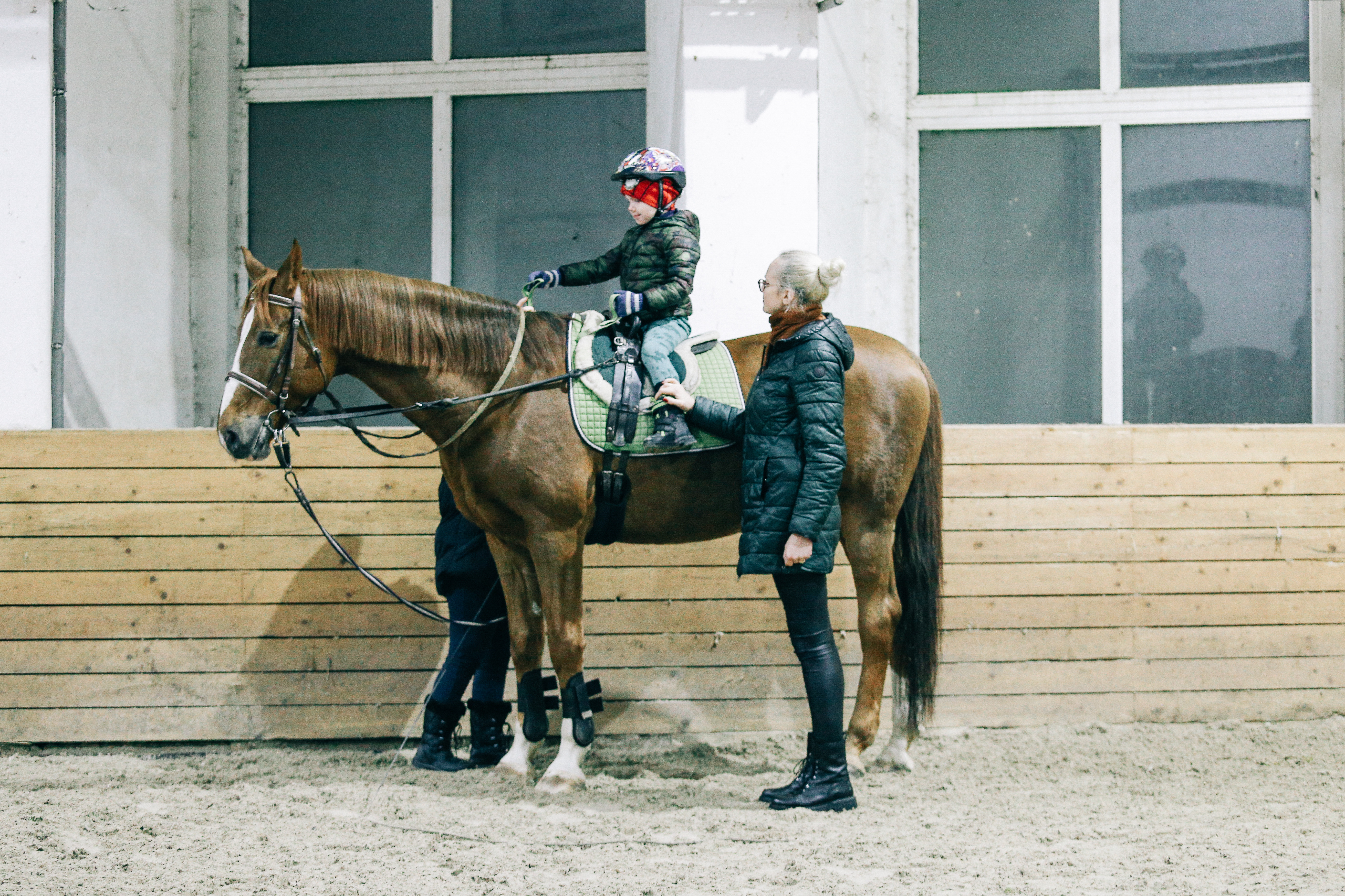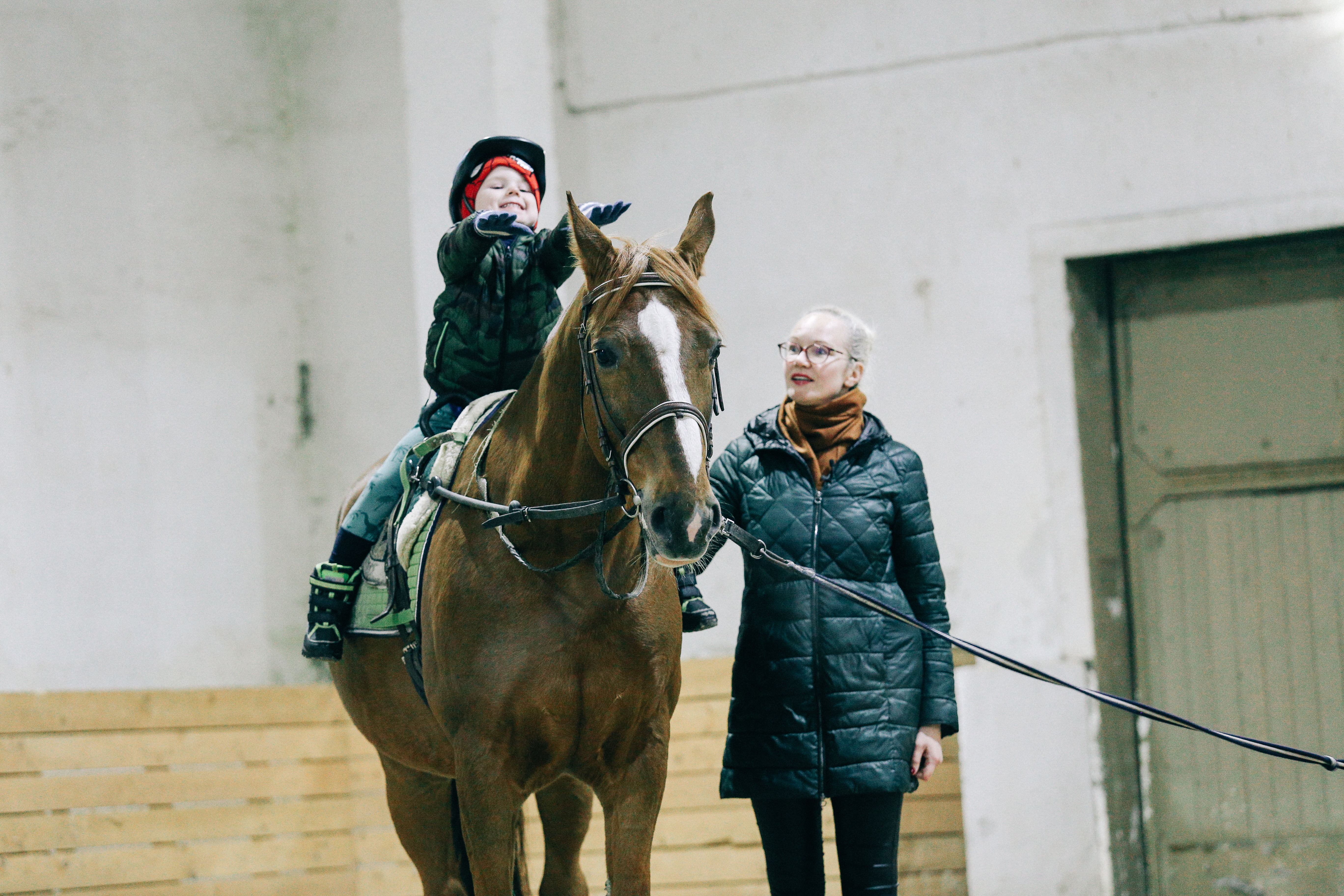 Aleksandrs ar mammu Agnesi katru trešdienu apmeklē reitterapijas nodarbības, kur zirga mugurā un trenera uzraudzībā viņš mācās gūt pārliecību par sevi, noturot līdzsvaru un izpildot dažādus uzdevumus, kā arī galvenais - saņem pozitīvas emocijas.