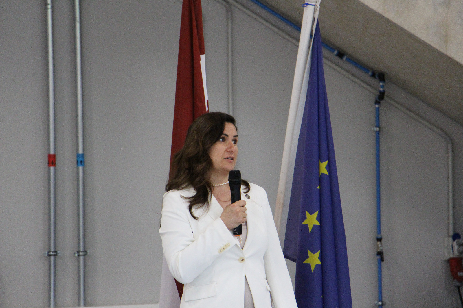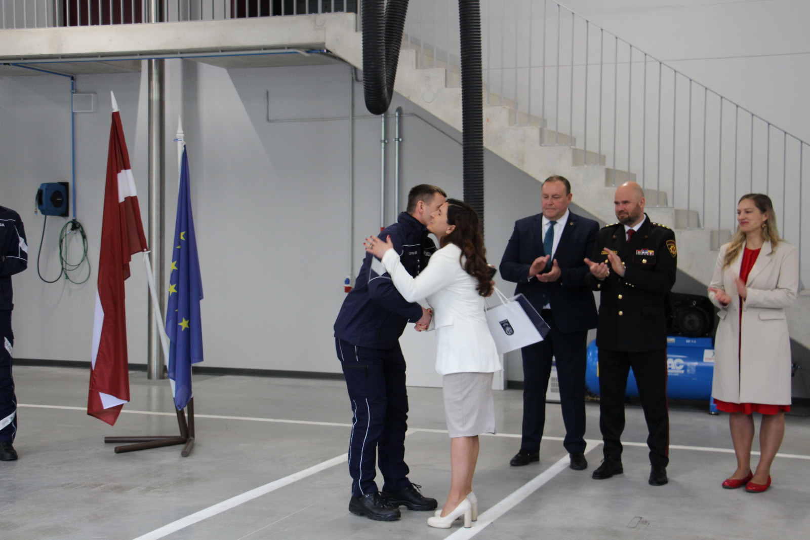 “Šodien ir emocionāla sajūta, jo šis ir izlaiduma mirklis vienam no bērniem. Par šiem katastrofu pārvaldības centriem cīnījāmies kopš 2019.gada dažādos formātos - ar vizuālām bildēm, ar apmeklējumiem vecajos Valsts ugunsdzēsības un glābšanas dienests, kuros strādā ugunsdzēsēji, policijas iecirkņos, kuros strādā valsts policisti. 2019.gadā maz bija cilvēku arī valdībā, kuri mums noticēja, ka mēs šo finansējumu no Eiropas Komisijas dabūsim. Iekšlietu resors līdz tam nebija finansējuma saņēmējs Eiropas Reģionālās attīstības fonda Kohēzijas politikas finanšu instrumentos, bet Atveseļošanas fonds bija kaut kas tobrīd pavisam jauns. Eiropas Komisija pirmo reizi šajos finanšu instrumentos nodefinēja prioritāti katastrofu pārvaldības sistēmas sakārtošanai Eiropā, saprata mūs un pirmie mums noticēja. Mēs esam daļa no Katastrofu pārvaldības sistēmas, gan ugunsdzēsēji, gan policisti, gan robežsargi un pārējie iekšlietu dienestu darbinieki kopā ar Neatliekamās medicīnas palīdzības dienestu, visi ir katastrofas pārvaldības sistēmā reaģējošie darbinieki. Šobrīd ir gandarījums redzēt, ka iekšlietu resors, kā fēnikss no pelniem, sāk iegūt savu prestižu un savu vizuālo veidolu, kādam tam jābūt. Darba vietām ir jāizskatās šādi, un aprīkojumam ar ko strādā glābēji, policisti, robežsargi ir jābūt modernam, laikam atbilstošam, lai mums sabiedrībai sniegtu vislabāko atbalstu. Paldies maniem kolēģiem Nodrošinājuma valsts aģentūrā, par visiem sarežģījumiem, kas ir pārvarēti, par visiem risinājumiem, kas tika atrasti. Paldies konkrēti būvniekam par kvalitatīvo, ātro darbu šī katastrofu pārvaldības centra būvniecībā. Dienesti baudiet, šos darba apstākļus, cieniet un mīliet šo vidi, lai jums ar vien jauni papildspēki pievienojas, jo šī ir tā darbavieta, kurā, visticamāk gribēs strādāt jaunieši. Lai mums kopā izdodas un ir mazāk notikumu uz kuriem izbraukt!” - uzrunā teica Nodrošinājuma valsts aģentūras direktore Ramona Innusa.