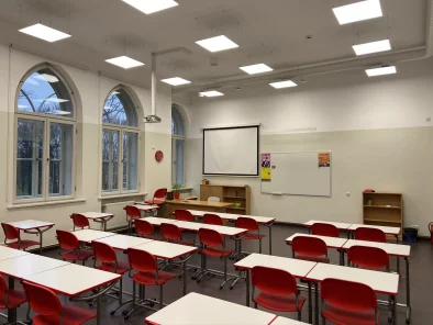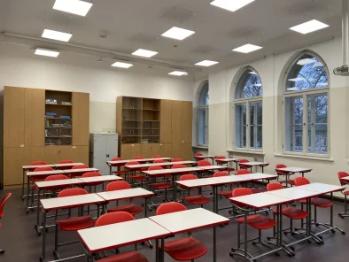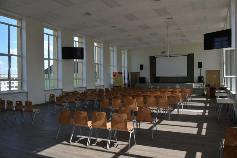 Daugavpils Tehnoloģiju vidusskolas-liceja aktu zāle atjaunota un aprīkota ar mūsdienīgam iekārtām, lai tā varētu kalpot kā multifunkcionāls centrs.