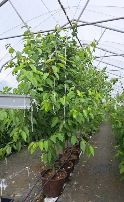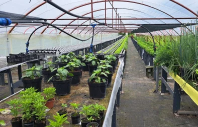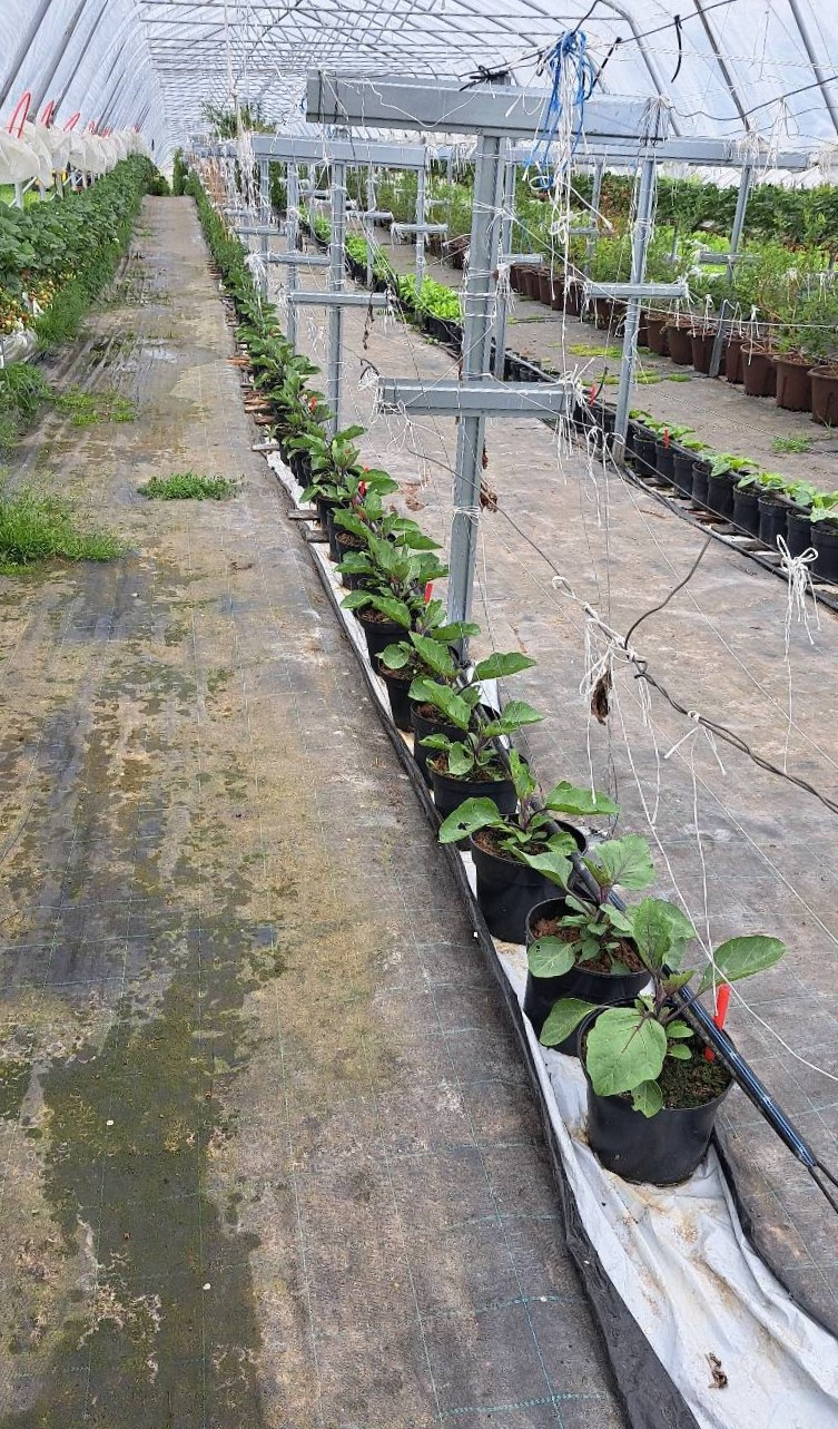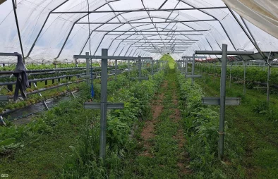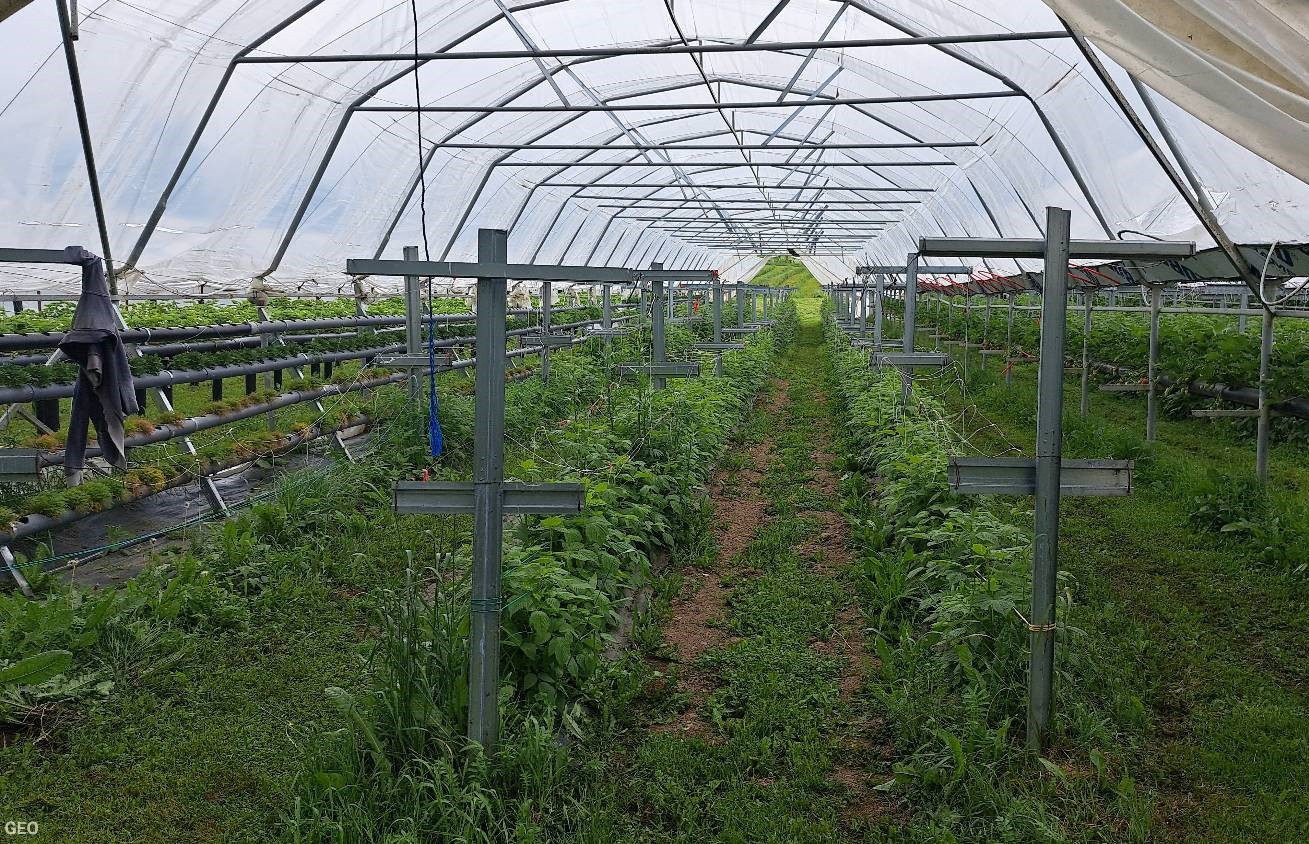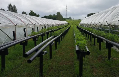 Stādu rindas īpašās sistēmās virs zemes tuneļa siltumnīcā