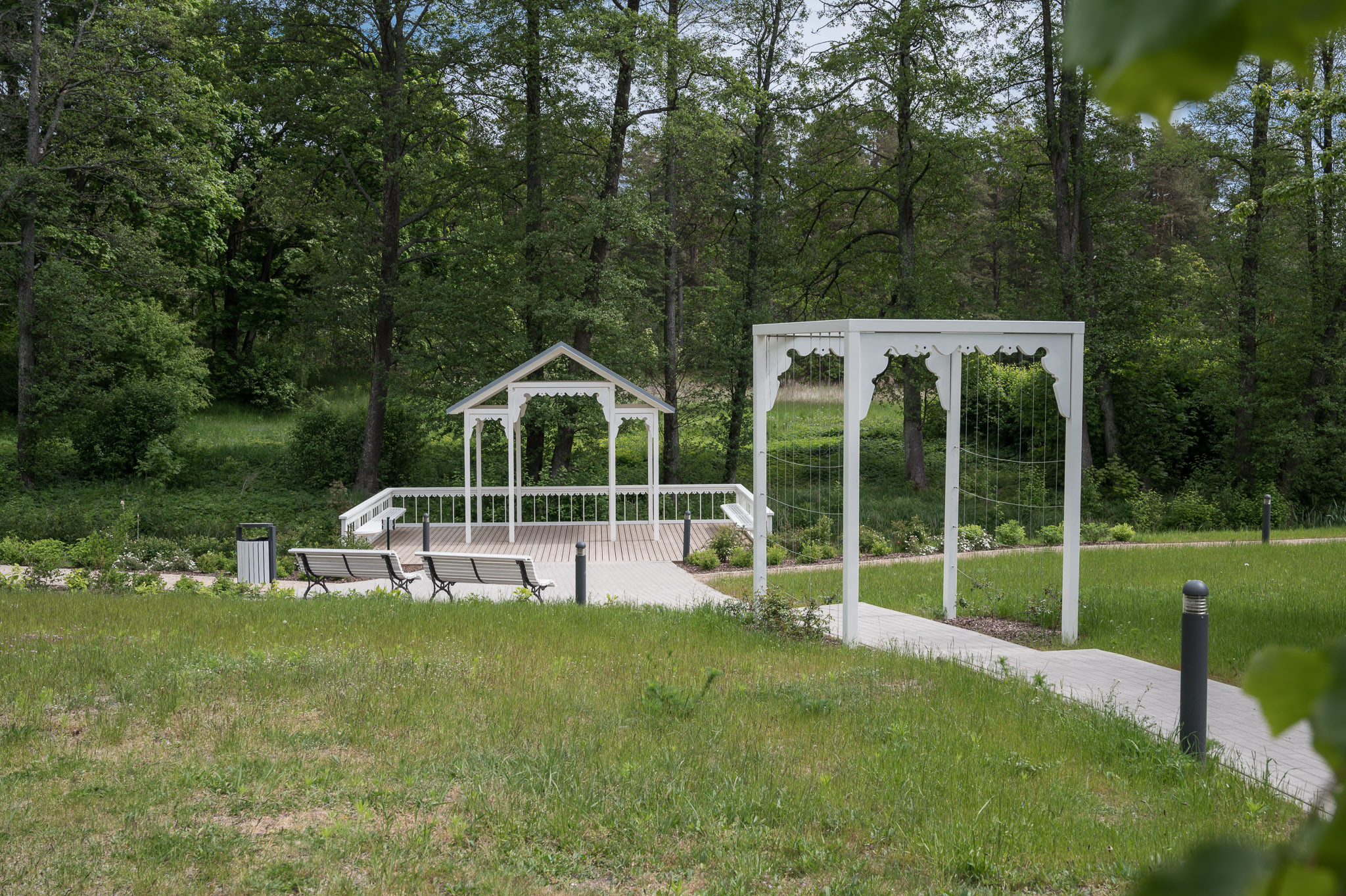 Kopumā parks ir labiekārtots 0.422 ha platībā. Parkā ir izveidoti gājēju celiņi ar soliņiem, neliela nojume – lapene, kas kalpo kā atpūtas vieta, kā arī brīvdabas pasākumu norises vieta. Pieejama ugunskura vieta, celiņus rotā krāšņi apstādījumi. Parka centrā apskatāms vides objekts – zvaigžņu globuss, kas kalpo kā simbols un apliecinājums objekta vēsturiskajām vērtībām.