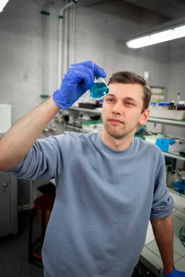 LU Ķīmiskās fizikas institūts apvieno zinātniekus fizikas un ķīmijas starpdisciplināro pētījumu veikšanai, tas sadarbojas ar rūpniecības uzņēmumiem, izstrādājot jaunas tehnoloģijas, un veicina to praktisko izmantošanu tautsaimniecībā. Tieši pie šādas idejas izstrādes – inovatīvas un praktiskas – strādā Krišjānis Buks, Ķīmiskās fizikas institūta zinātniskais asistents, LU maģistrantūras students.