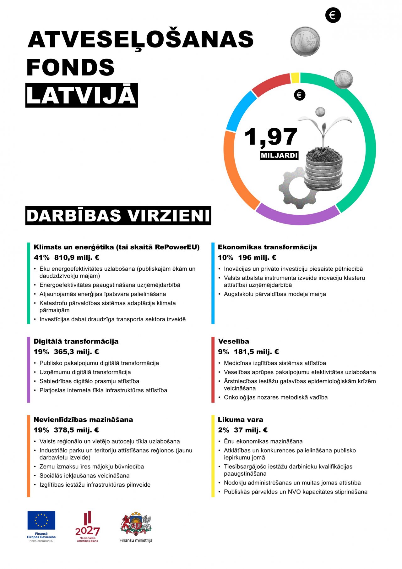 Projektus var iesniegt uzņēmēji, pašvaldības un valsts organizācijas. Atveseļošanas fonda finansējums būs pieejams laika periodam līdz 2026.gada 31. augustam.