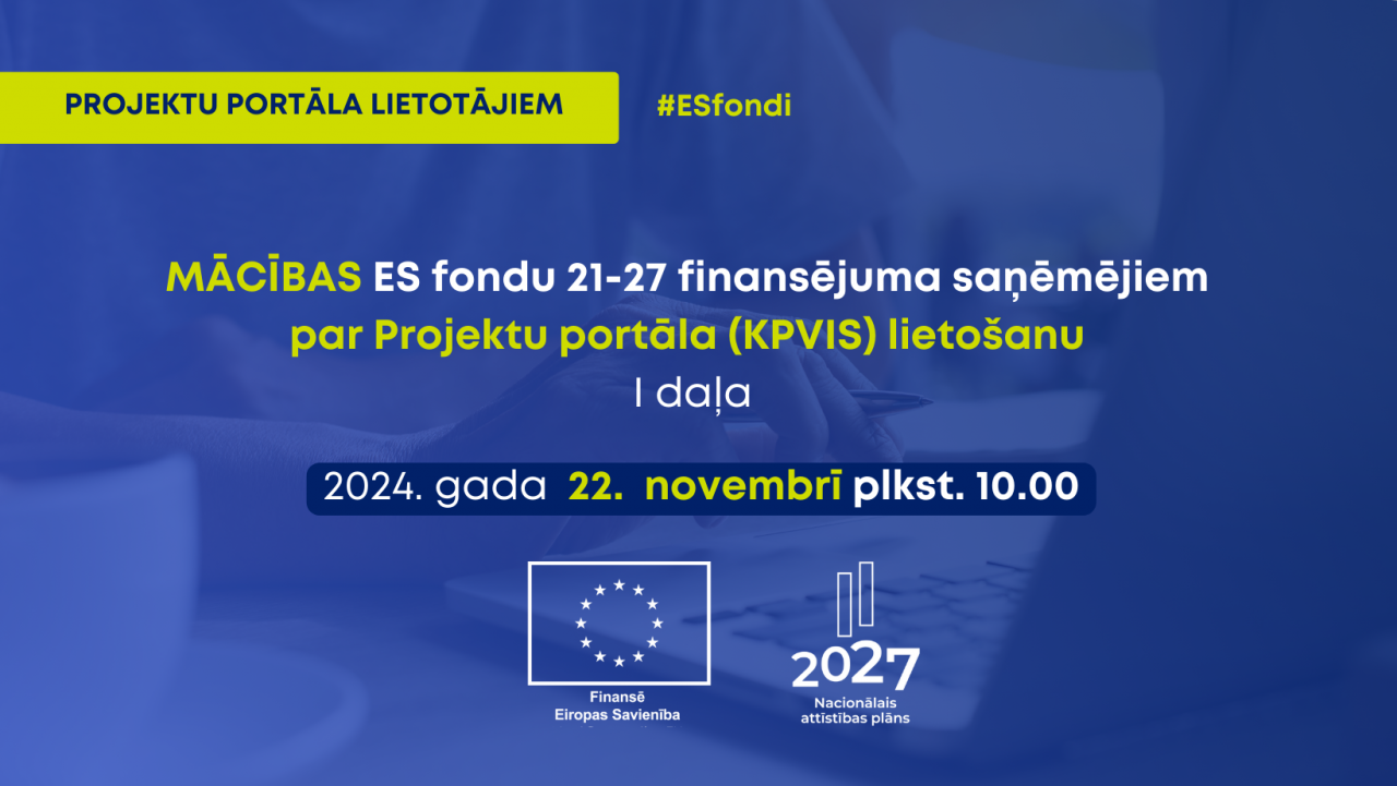 Centrālā finanšu un līgumu aģentūra Eiropas Savienības (ES) fondu 2021.-2027. gada plānošanas perioda projektu finansējuma saņēmējiem piedāvā mācības par Projektu portāla (Kohēzijas politikas vadības informācijas sistēmas jeb KPVIS) lietošanu.