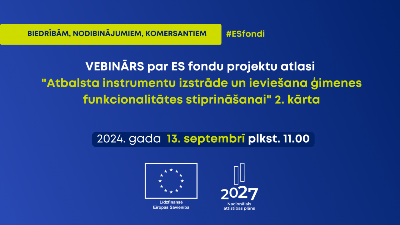 Vebinārs par ES fondu projektu atlasi "Atbalsta instrumentu izstrāde un ieviešana ģimenes funkcionalitātes stiprināšanai" (2. kārta)