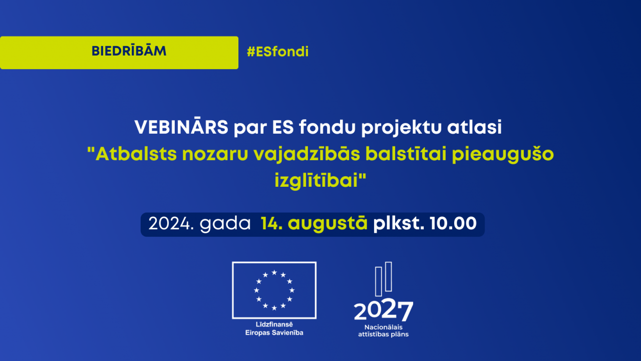 Vebinārs par ES fondu projektu atlasi "Atbalsts nozaru vajadzībās balstītai pieaugušo izglītībai" (1. kārta)