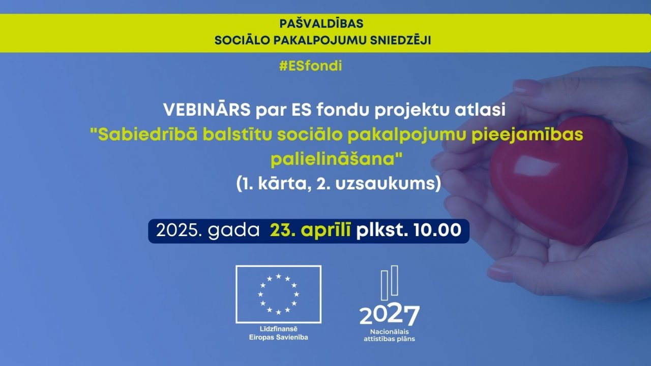 Vebinārs par ES fondu projektu atlasi “Sabiedrībā balstītu sociālo pakalpojumu pieejamības palielināšana” 1. kārta, 2. uzsaukums
