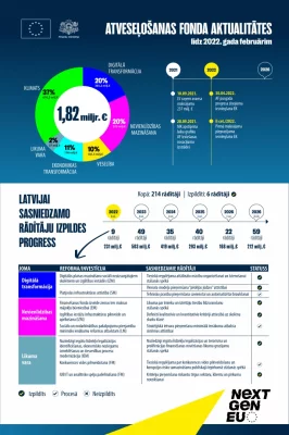 “Līdz šim brīdim Latvijā ir sasniegts būtisks progress gan AF plānā noteikto investīciju, gan reformu jomā – ir izpildīta lielākā daļa no pirmajiem deviņiem sasniedzamajiem rādītājiem, un atbildīgās nozaru ministrijas veic aktīvu darbu, lai līdz ar pirmā maksājuma pieprasījuma iesniegšanu EK tiktu izpildīti arī atlikušie,” uzsver finanšu ministra padomnieks Ints Dālderis. Vienlaikus arī atzīmē, ka Latvijas AF plānā ir iekļauti ambiciozi un politiski jutīgi mērķi, kā dēļ darbs pie vairākām reformām ir diezgan sarežģīts un prasa nopietnas un laikietilpīgas politiskās diskusijas.