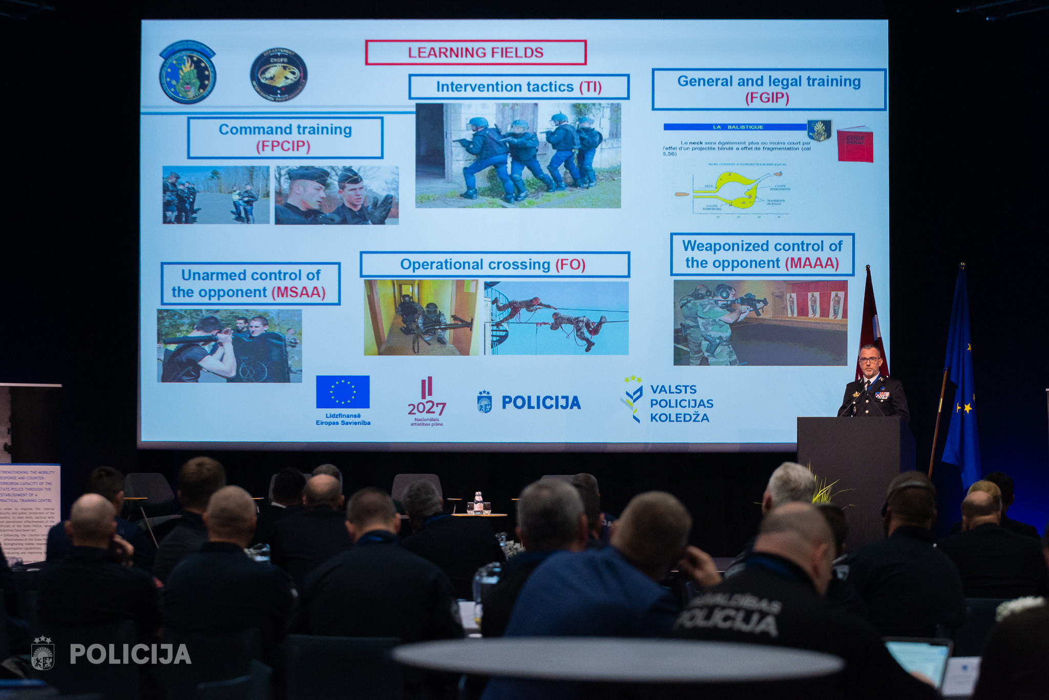 Atklājot Eiropas Savienības Iekšējās drošības fonda projektu Nr. VP/IDF/2024/5 “Valsts policijas reaģēšanas mobilitātes un pretterorisma spēju stiprināšana, veidojot praktisko mācību centru” (turpmāk – projekts), no 2024. gada 20. līdz 21.novembrim norisinājās starptautiska konference “Terorisma draudu pārvaldība: policijas un intervences vienību efektivitāte, sadarbība un personāla sagatavotība”. Konference pulcēja vairāk nekā 250 dalībnieku no 13 valstīm un tajā galvenais tematiskais uzsvars likts uz terorisma draudu pārvaldību no dažādu tiesībaizsardzības iestāžu perspektīvas.