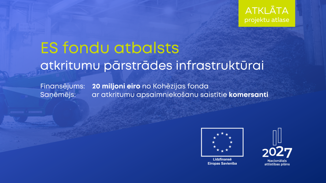 Centrālā finanšu un līgumu aģentūra (CFLA) ir izsludinājusi atklātu projektu atlasi, aicinot ar atkritumu pārstrādi saistītos komersantus pieteikties Eiropas Savienības (ES) fondu atbalstam, lai investētu līdzekļus atkritumu pārstrādē. Pieejamais Kohēzijas fonda (KF) finansējums – 20  miljoni eiro.