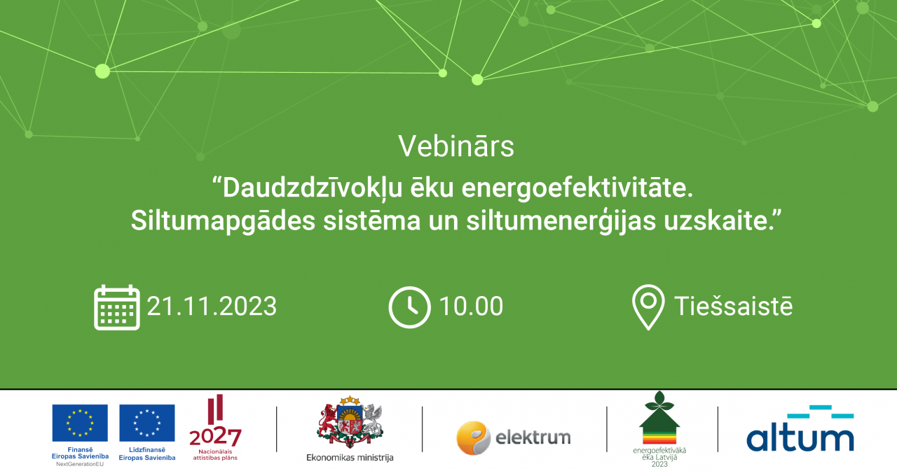 Vebināros eksperti atgādinās par siltumapgādes sistēmas atjaunošanas ieguvumiem un tehniskajiem risinājumiem, siltumenerģijas uzskaiti, kā arī par apkures iekārtām un to izvēli.