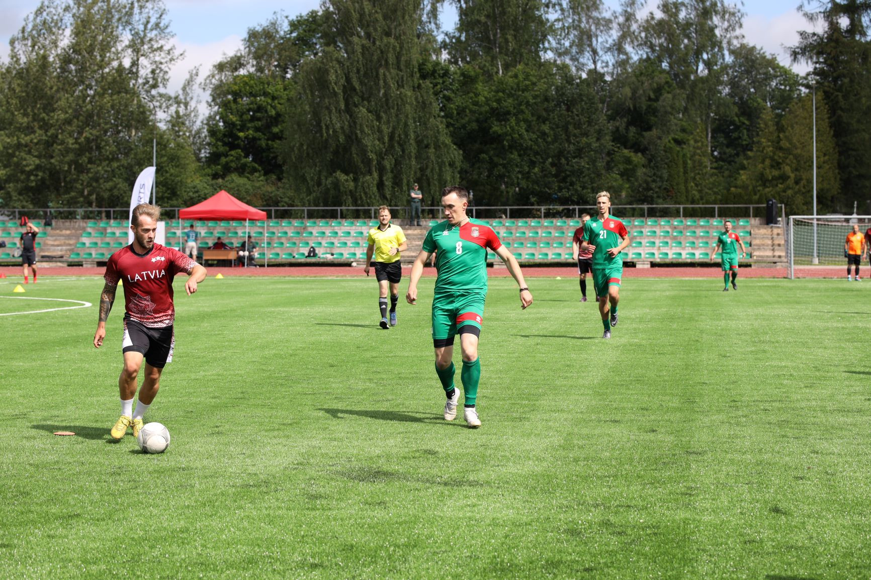 Atzīmējot atjaunotā stadiona atklāšanu, norisinājās Iekšlietu ministrijas 2024. gada atklātā čempionāta futbola sacensības, kurās dalību ņēma Valsts policijas, Valsts robežsardzes, Valsts ugunsdzēsības un glābšanas dienesta, Valsts policijas Rīgas reģiona pārvaldes, Iekšlietu ministrijas iestāžu komandas un apvienotā Pašvaldības policijas darbinieku komanda (Rīgas pašvaldības policija). Katra komanda sastāvēja no 12 dalībniekiem.