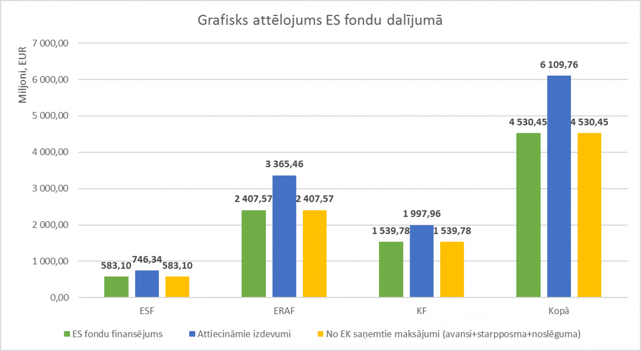 2007.-2013.gada plānošanas perioda ES fondu finanšu rezultāti darbības programmu dalījumā (ES fondu daļa)