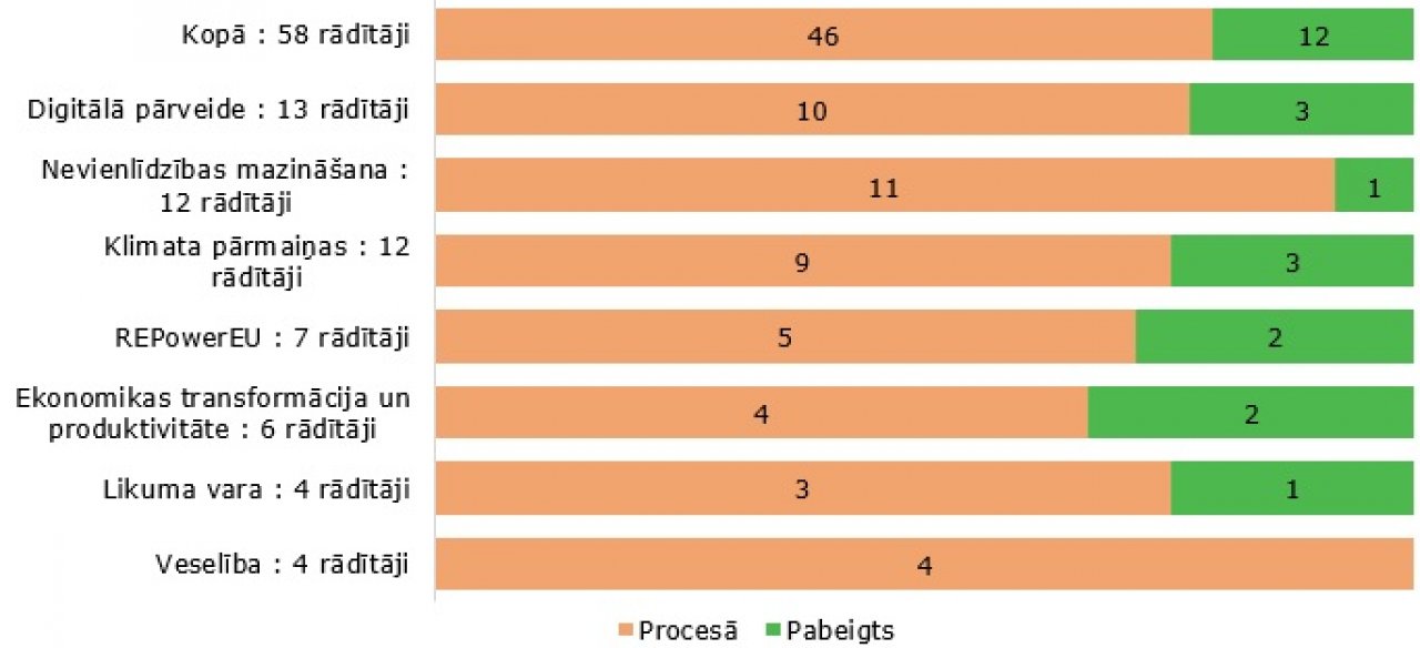 Piektā maksājuma pieprasījuma atskaites punktu/ mērķu izpilde pret Atveseļošanas fonda plānā noteikto izpildes termiņu dalījumā pa jomām (uz 2026.gada 01. aprīli)