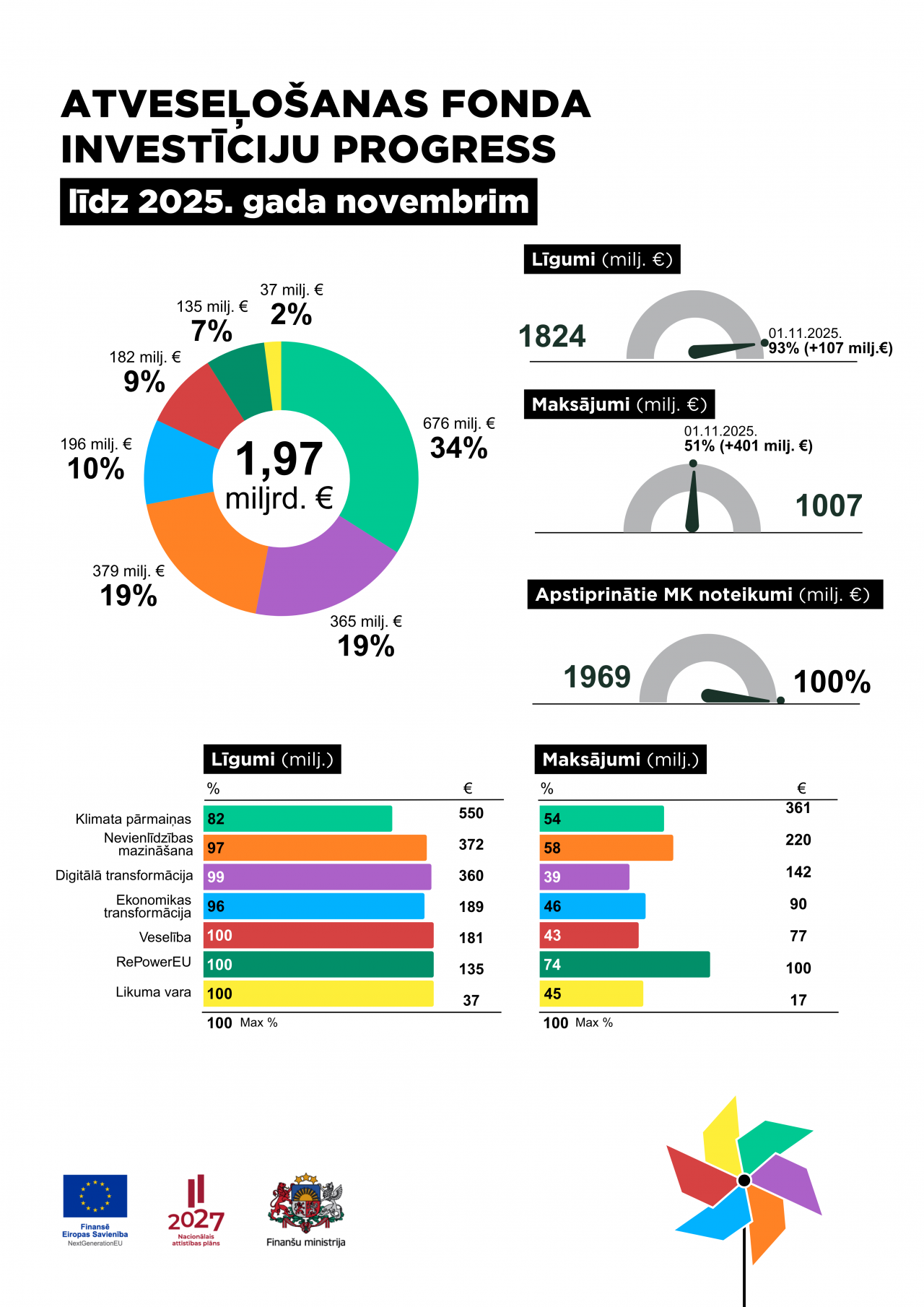 2025. gada Atveseļošanas fonda aktualitātes (uz 2025.gada 1. novembri)