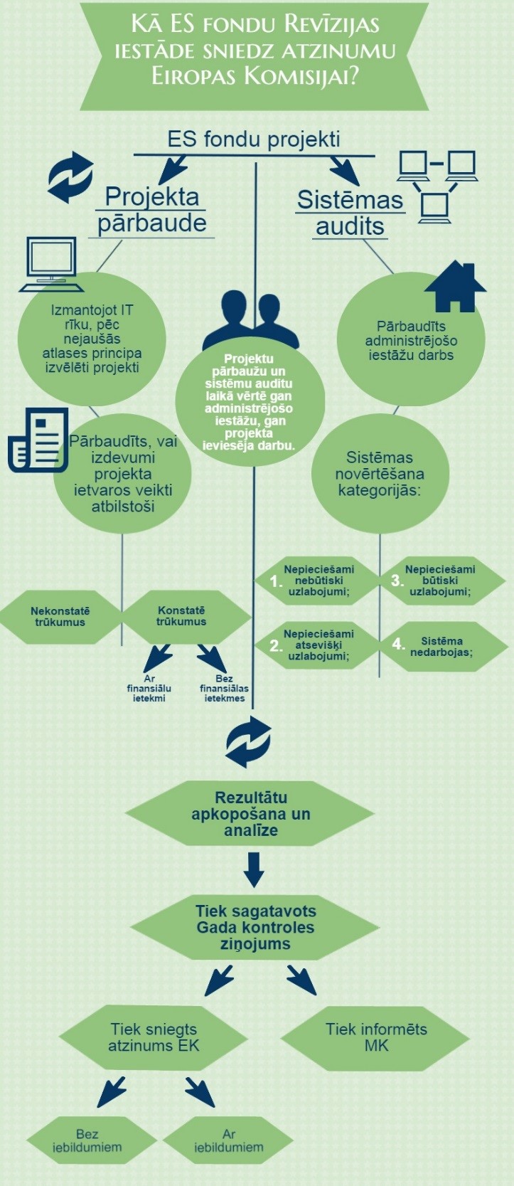 Veids, kādā ES fondu Revīzijas iestāde sniedz atzinumu Eiropas Komisijai par ES fondu projektu auditiem un ES fondu kontroles sistēmu